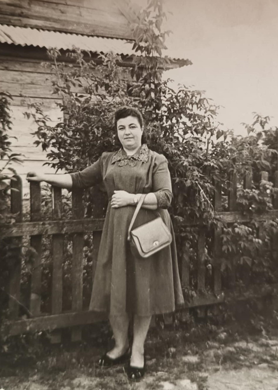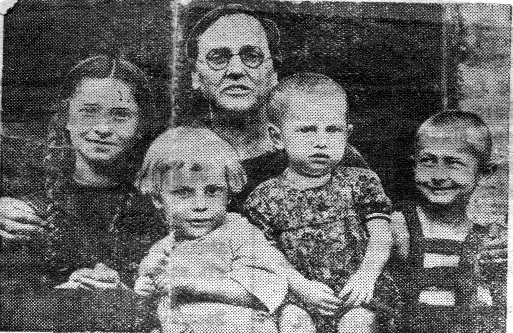 Anelė Skirvainytė su savo anūke Vidute Žilinskaite ant rankų ir artimaisiais prie savo namo Šiauliuose, kur slapstė ir globojo Lidiją Frankienę |