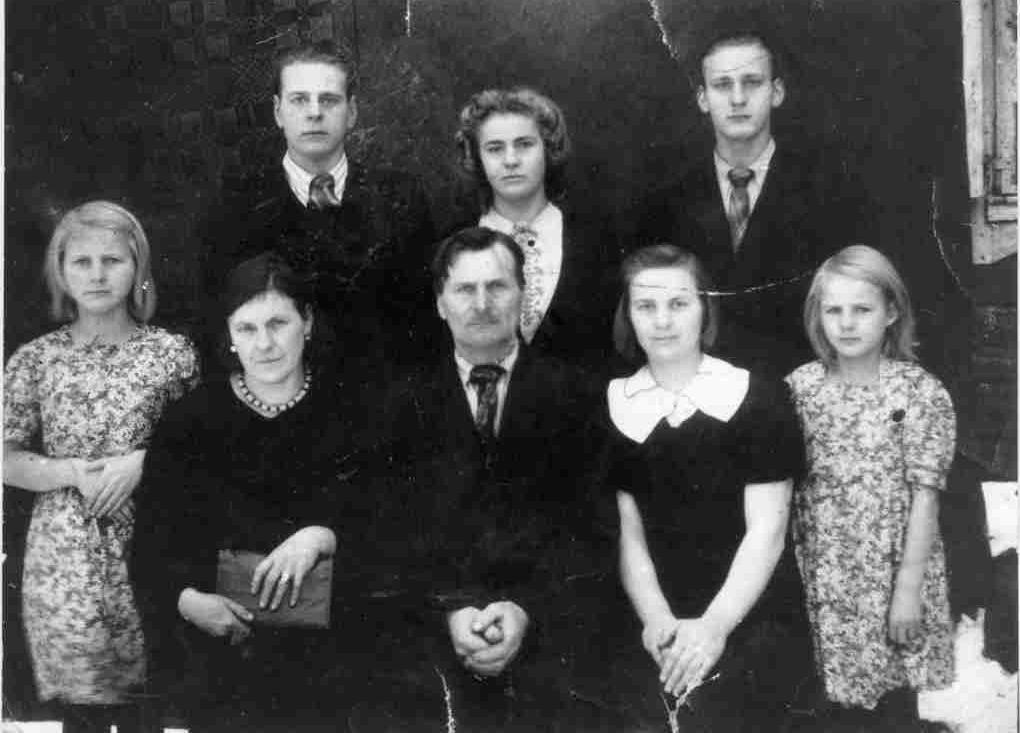 Juozapas ir Elena Markevičiai su savo vaikais. Pirmoje eilėje iš kairės: Jadvyga, Elena, Juozapas, Marijona, Regina. Antroje eilėje iš kairės: Romualdas, Valerija, Jonas |