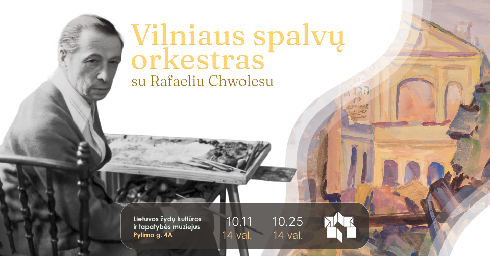 Jos metu kviesime pažinti dailininko Rafaelio Chwoleso Vilnių, klausysimės muzikos ir patys kursime – tapysime savo miesto peizažą, įkvėptą garsų ir spalvų harmonijos. Edukacinės veiklos dalyviai turės galimybę susipažinti su retai eksponuojamais Rafaelio Chvoleso darbais muzikos tema. Užsiėmimas tiks visiems – net ir tiems, kurie mano, kad „nemoka piešti“.