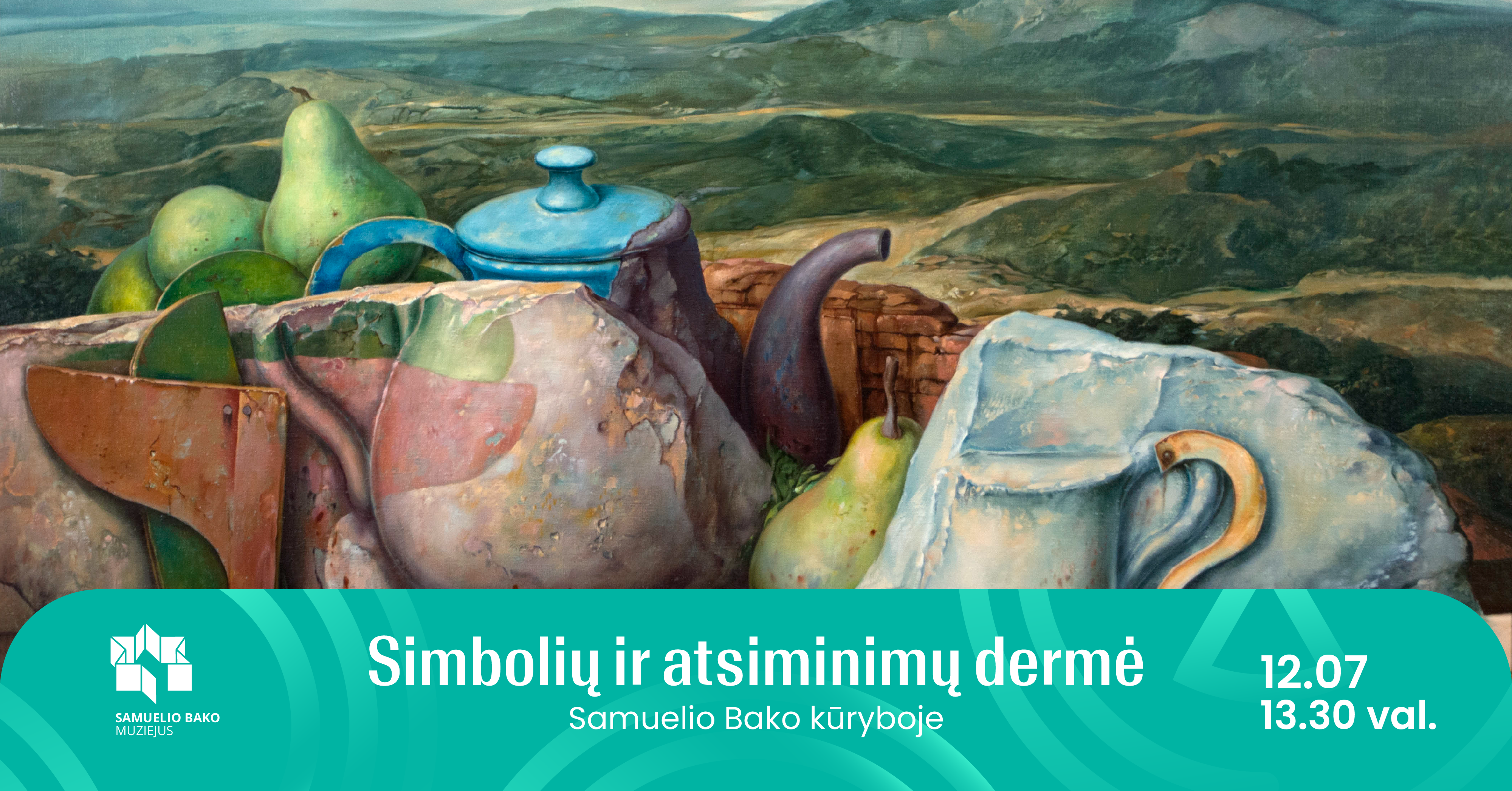 Maloniai kviečiame į ekskursiją, kurioje analizuosime ir gilinsimės į dailininko Samuelio Bako kuriamą simbolių pasaulį ir pasakojimą vaizdu. Kiekvienas pasirinktas objektas – simbolis (kaip arbatinukas, kriaušė, lošimo kauliukas ir kiti) slepia gyvenimo nuotrupas, prisiminimus iš kūrėjo vaikystės ir sudėtingus išgyvenimus. Atrasime šias sąsajas ir jaudinančias istorijas lankydamiesi nuolatinėje muziejaus ekspozicijoje ir „Žaidimas gyvenimu“ parodoje.