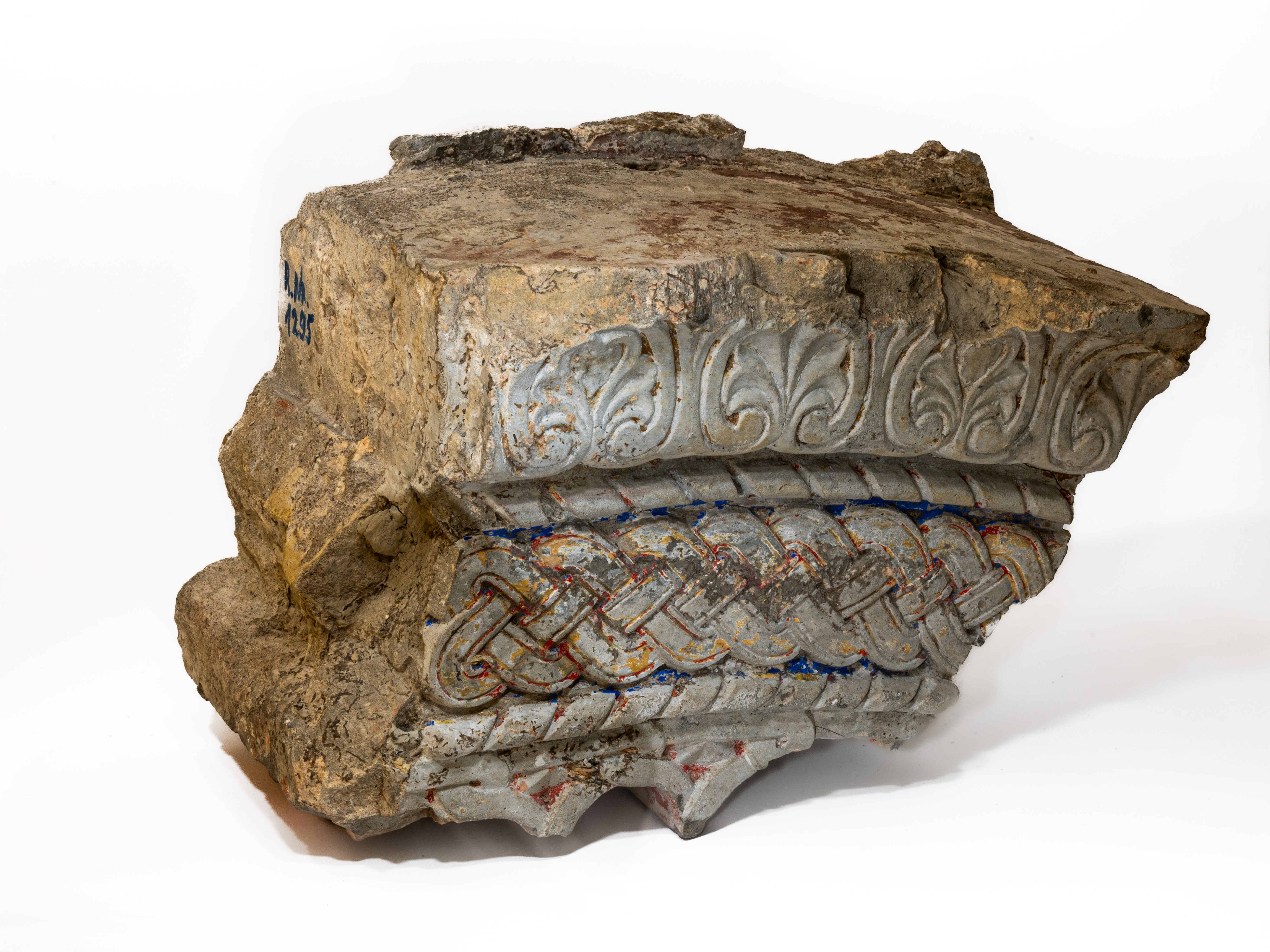 Vienas mažiau matomų, bet savaip kalbančių mūsų muziejaus rinkinių – archeologinis paveldas. Nuotraukoje matote arkos lanko fragmentą su puošniu archivoltu, rastą 2011 m. per buvusios Vilniaus Didžiosios sinagogos teritorijos kasinėjimus.