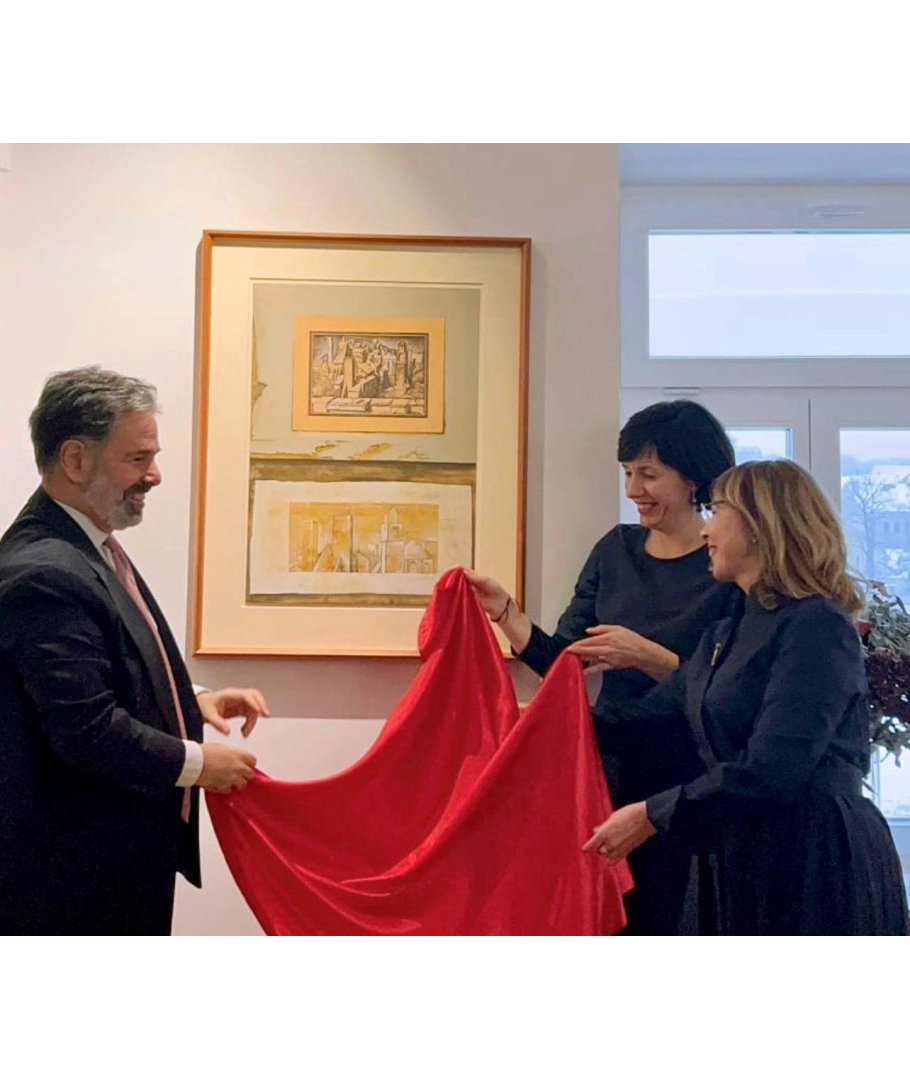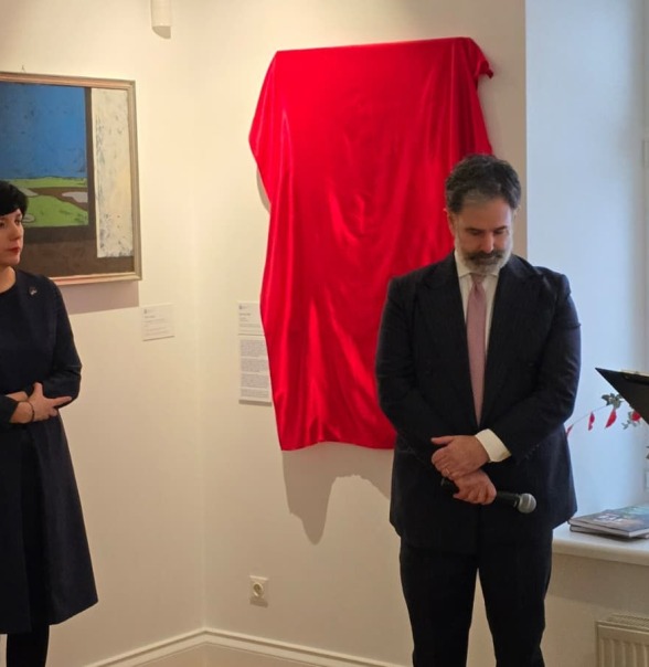 On January 27, marking the International Holocaust Remembrance Day, Italian Ambassador Emanuele de Maigret invited distinguished guests to a special event at the Embassy of the Republic of Italy in Vilnius, where the temporarily exhibited painting “Italianite” (1965) by Samuel Bak was presented in the embassy gallery.