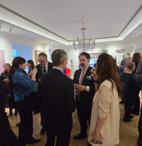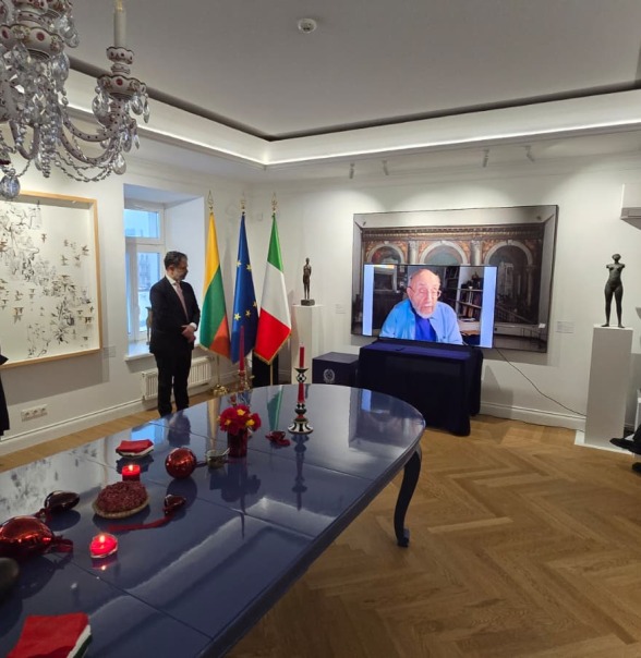 (English below) Sausio 27-ąją, minint Tarptautinę Holokausto aukų atminimo dieną, Italijos ambasadorius Emanuele de Maigret pakvietė garbius svečius į ypatingą renginį Italijos Respublikos ambasadoje Vilniuje – galerijoje buvo pristatytas laikinai eksponuojamas Samuelio Bako paveikslas „Italianite“ (1965).