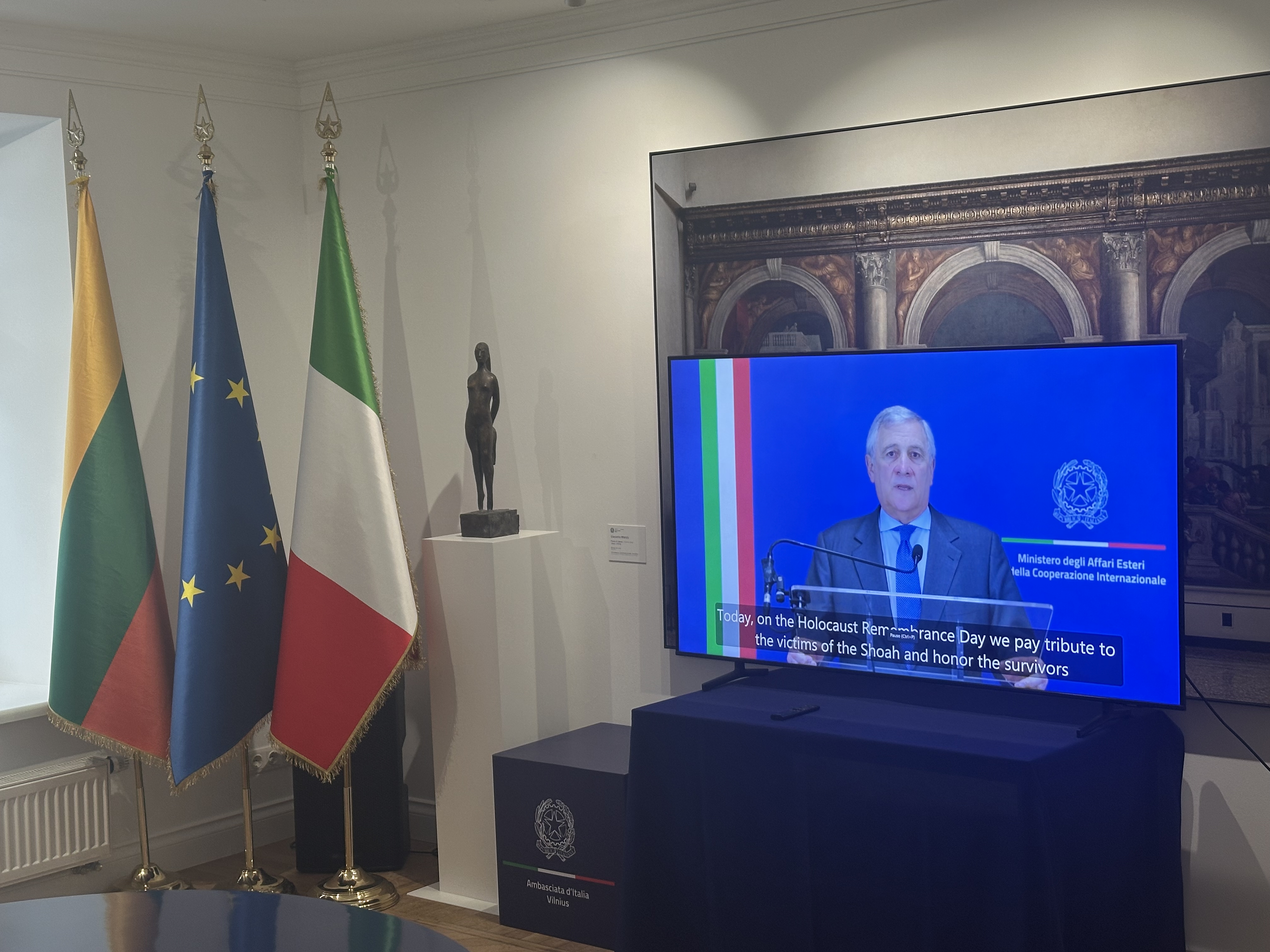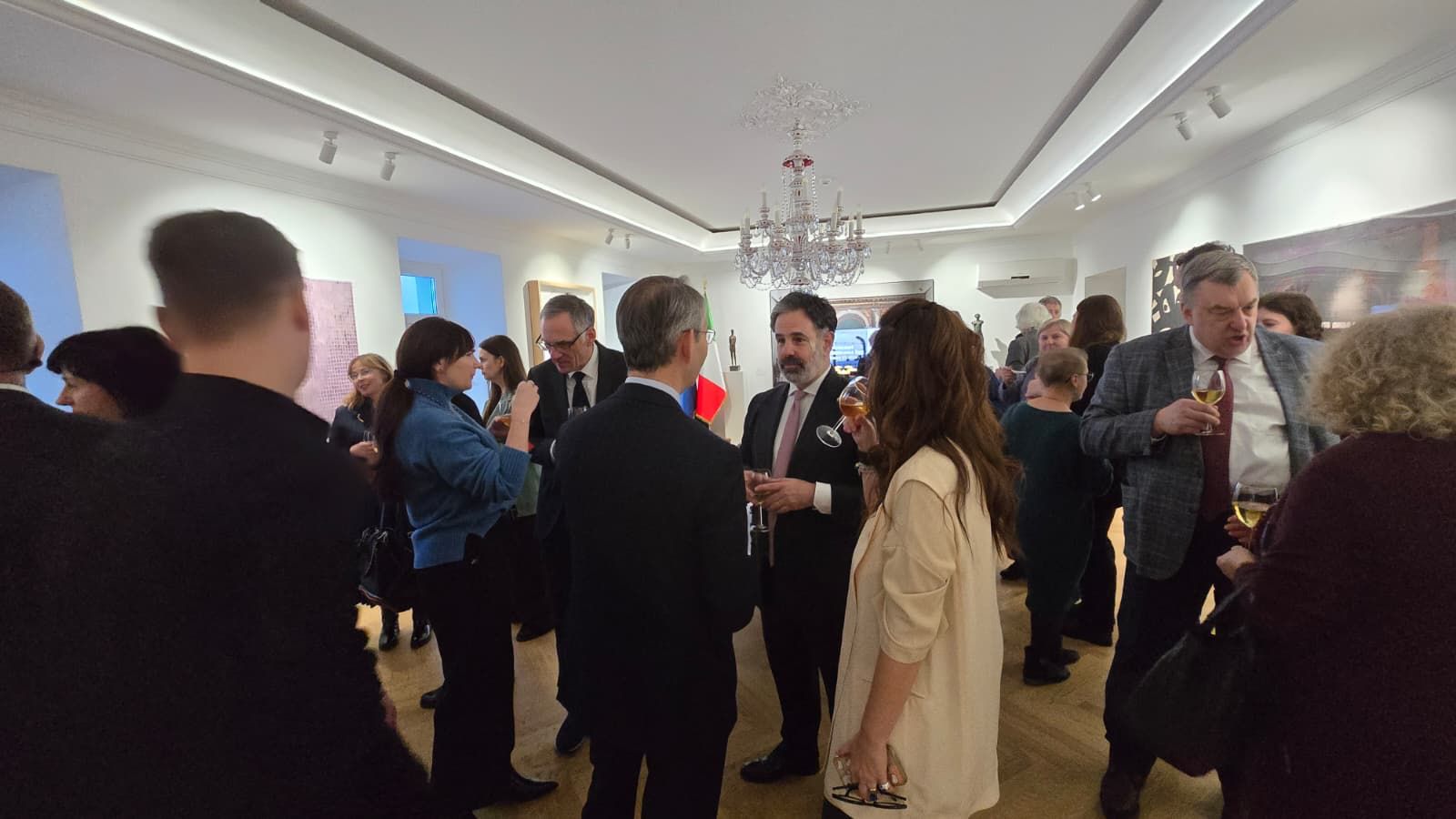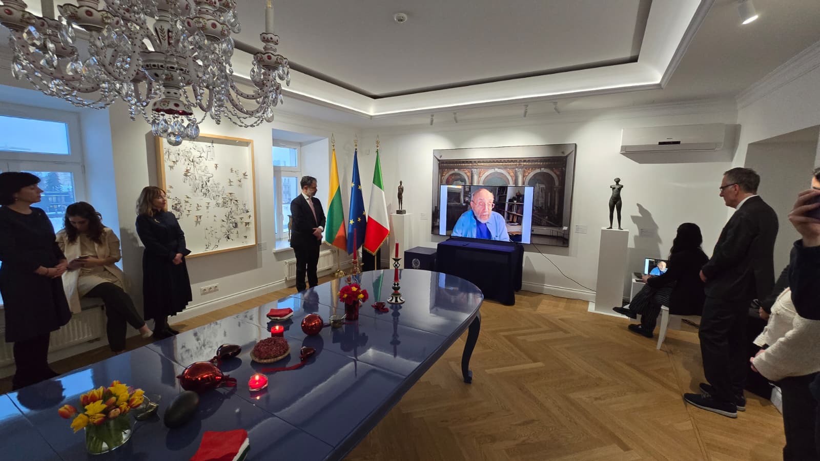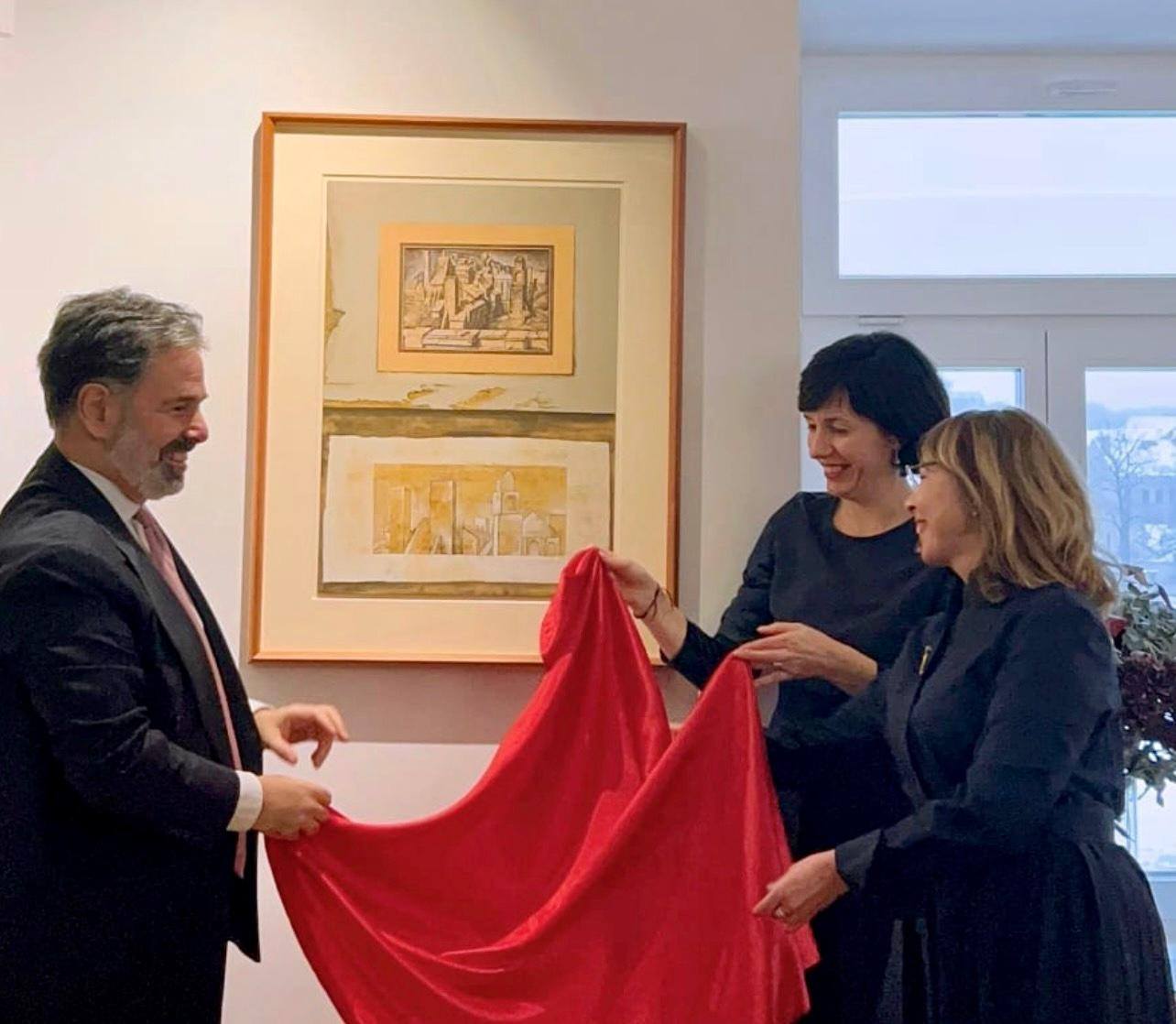 On January 27, marking the International Holocaust Remembrance Day, Italian Ambassador Emanuele de Maigret invited distinguished guests to a special event at the Embassy of the Republic of Italy in Vilnius, where the temporarily exhibited painting “Italianite” (1965) by Samuel Bak was presented in the embassy gallery.