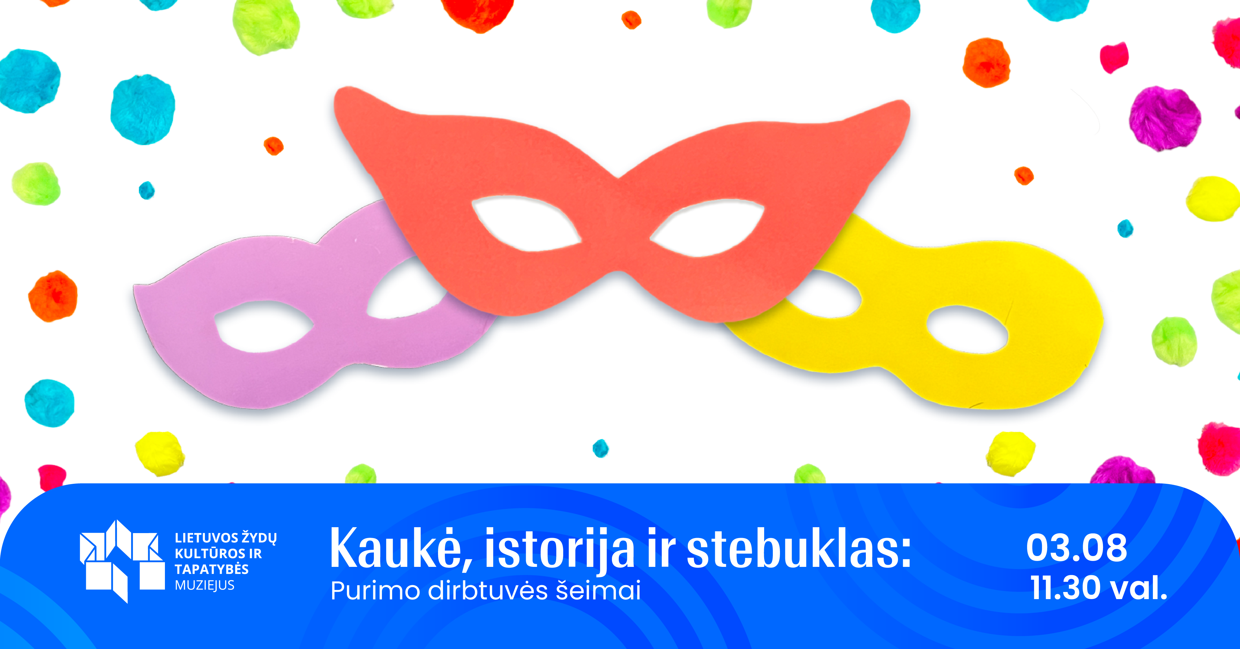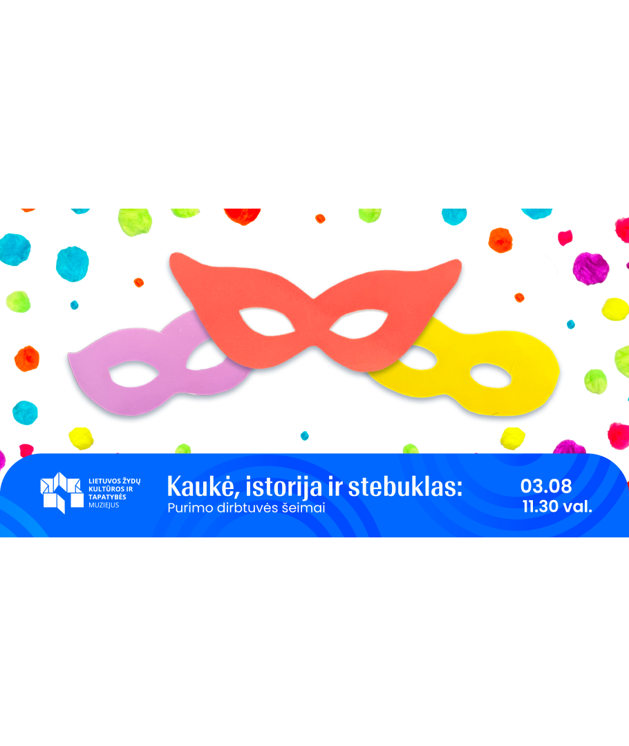 Užsiėmimo metu kursime spalvingas Purimo kaukes iš kartono, plunksnų, blizgučių ir kitų dekoratyvinių priemonių. Kūrybinio proceso metu susipažinsime su Purimo istorija – Esteros knygos siužetu, šventės simbolika bei tradicijomis. Pasipuošę savo sukurtomis kaukėmis leisimės į pažintinę kelionę po muziejaus ekspoziciją – ieškosime objektų, susijusių su Lietuvos žydų kultūra, ir siesime juos su Purimo istorijos motyvais. Dalyvių lauks smagios užduotys, padėsiančios kūrybiškai pažinti muziejų ir šventės prasmę.