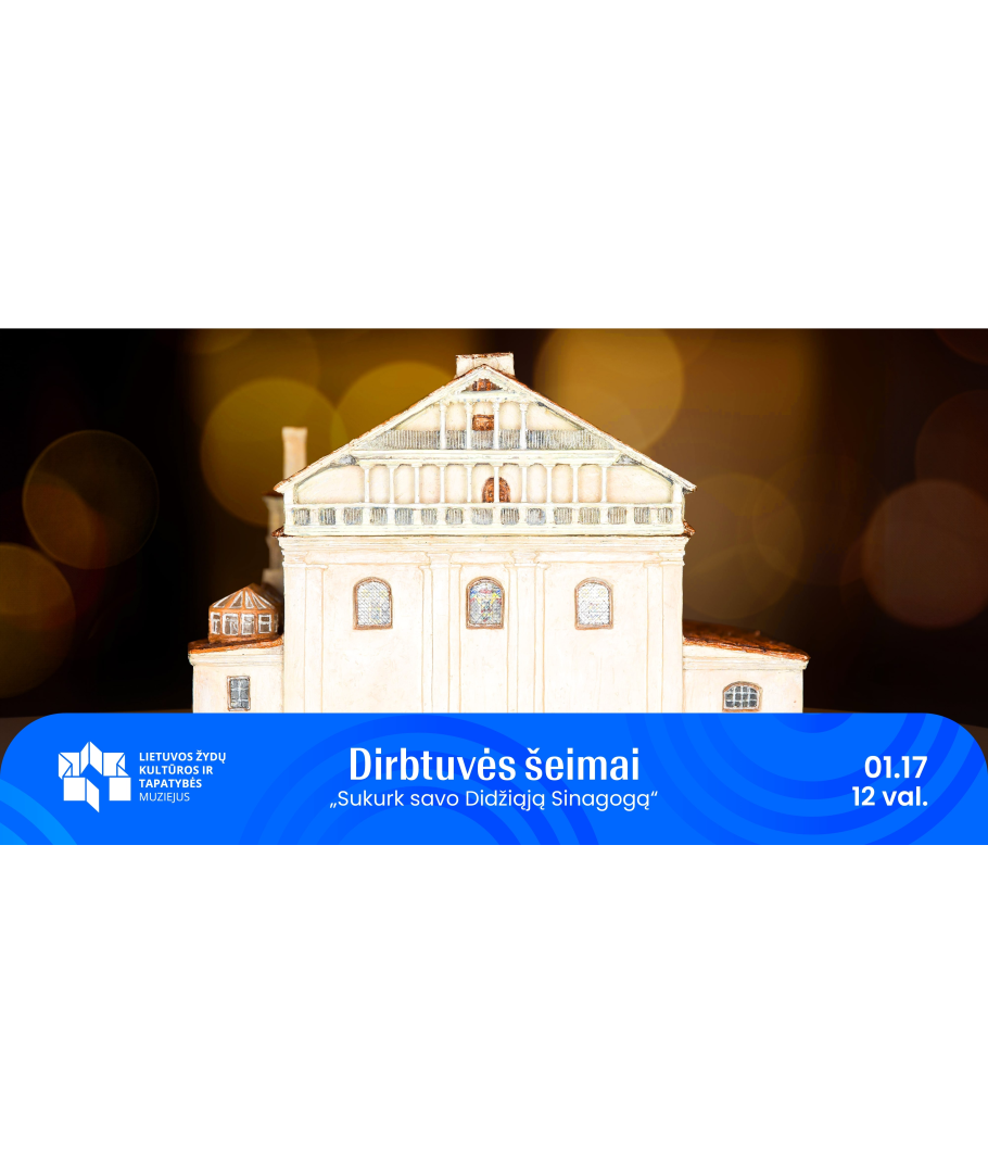 Šeimoms skirtos kūrybinės dirbtuvės Lietuvos žydų kultūros ir tapatybės muziejuje! Sausio 17 d. 12 val. kviečiame kartu leistis į kelionę po Vilniaus Didžiosios sinagogos istoriją ir vaizduotės pasaulį. Apžiūrėsime neseniai pristatytą sinagogos maketą, aptarsime jo architektūrines detales, bandysime įsivaizduoti, koks gyvenimas čia virė prieš daugelį metų.