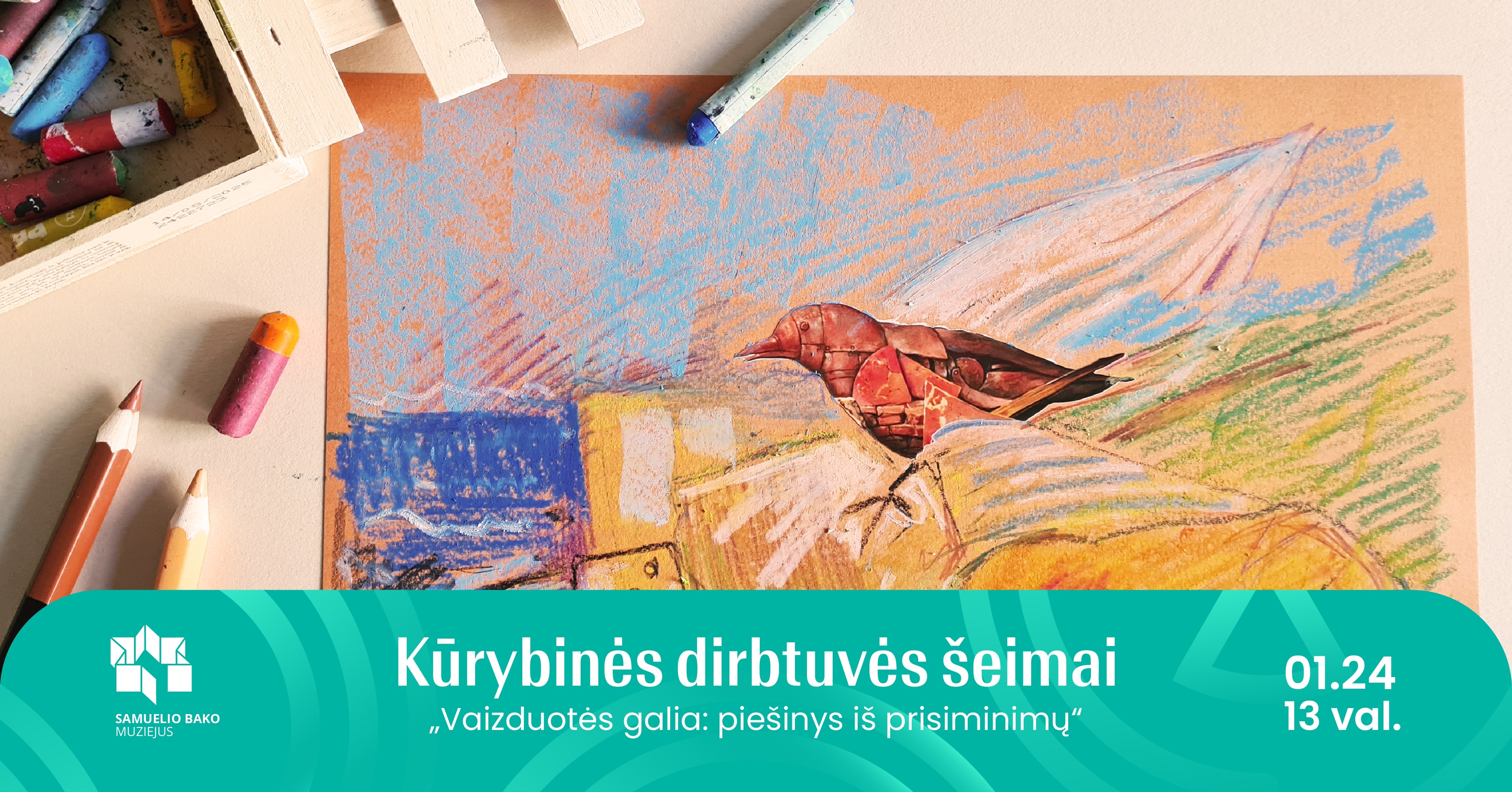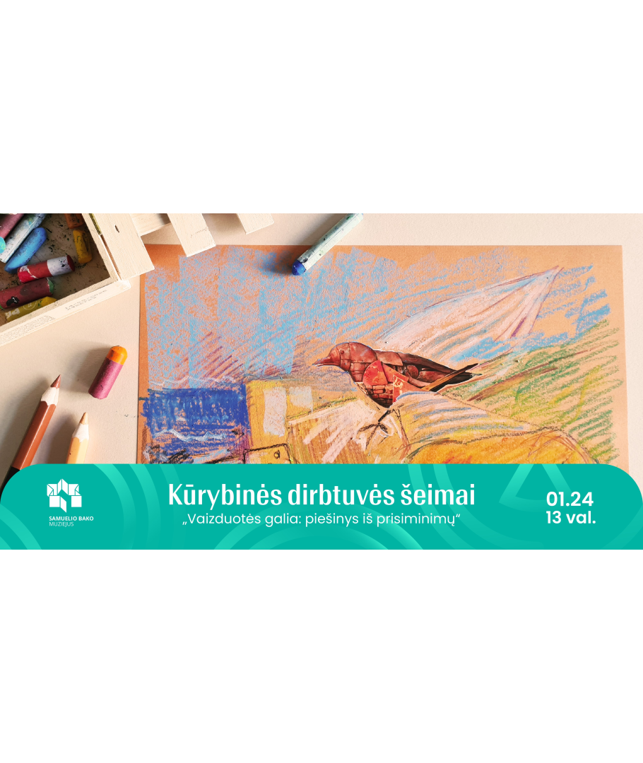 Maloniai kviečiame šeimas su mokyklinio amžiaus vaikais sudalyvauti įkvepiančiose kūrybinėse dirbtuvėse. Kursime improvizacinį piešinį pagal dailininko Samuelio Bako paveikslą „Didesnis už gyvenimą“ (2000). Bandysime „praplėsti“ paveikslo ribas ir kurti netikėtą piešinio tęsinį, pasitelkiant vaizduotę ir aliejinės pastelės kreideles. O prieš tai išgirsime jaudinantį pasakojimą apie Samuelį Baką – išskirtinį kūrėją, nepaprastos vaizduotės meistrą. Jo kūriniai gimsta iš jo išgyvenimo stebuklo ir atspindi Holokausto metu patirtus išgyvenimus gimtajame Vilniuje. Ką jis piešė būdamas devynerių? Kokiomis sąlygomis tai darė? Kodėl paveiksluose jis buities daiktus išdidina iki namo dydžio? Ieškosime atsakymų į iškeltus klausimus menininko darbuose nuolatinėje muziejaus ekspozicijoje.