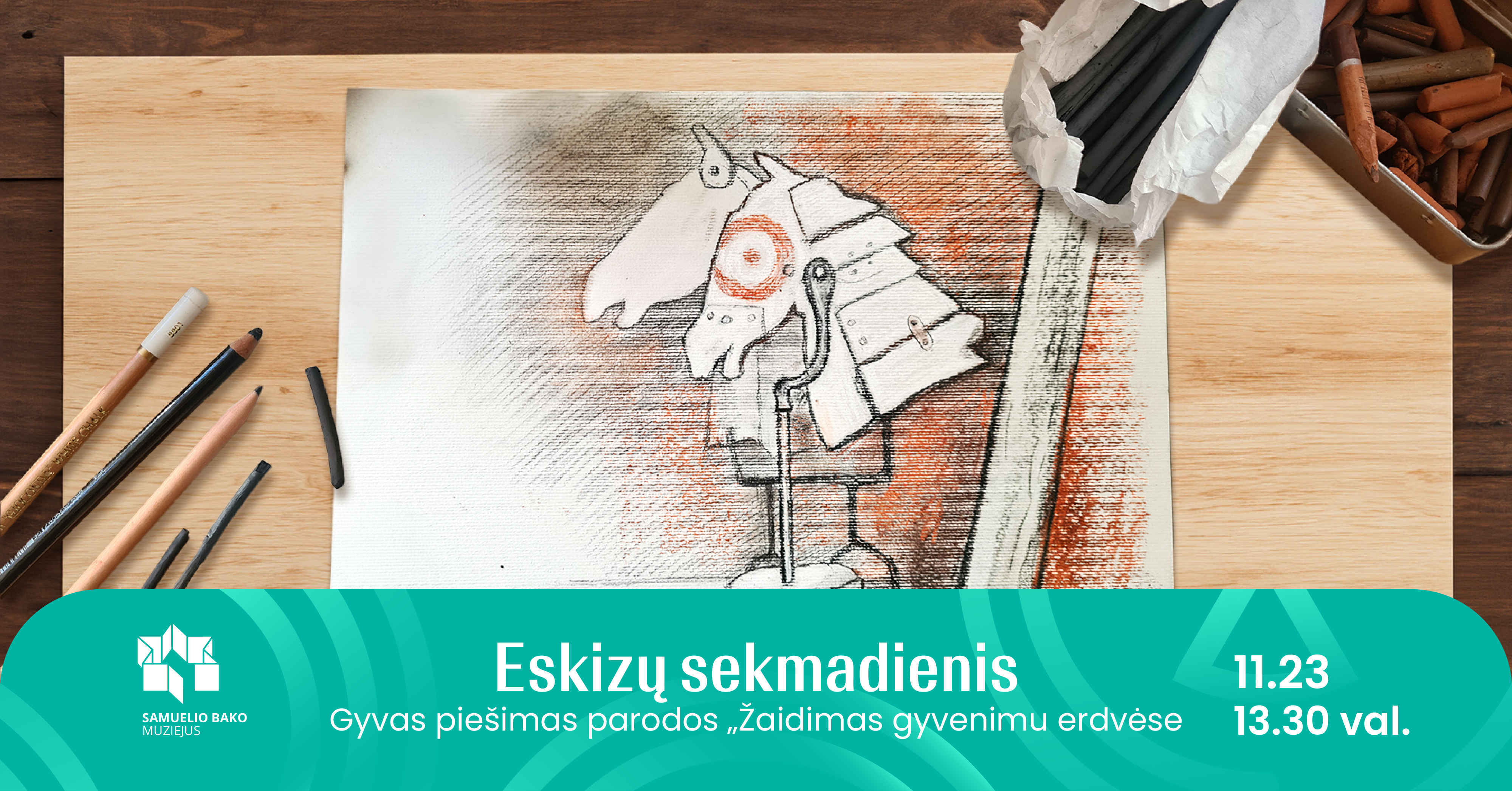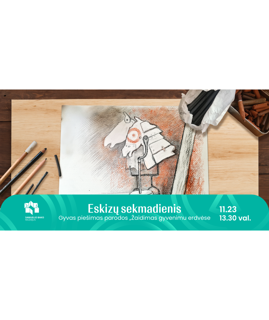 Patinka piešti, eskizuoti? Kviečiame tai daryti Samuelio Bako muziejuje, žvelgiant į jo paveikslus! Tai – nepaprasta patirtis ir užsiėmimas, kuris įsimins ilgam. Vedami muziejaus edukatorės – dailininkės, pasivaikščiosime po naują parodą „Žaidimas gyvenimu“. Atsirinkę patikusius paveikslus, jų fragmentus ar konkrečius alegorinius simbolius, kursime eskizus minkštomis priemonėmis. Užsiėmimo metu suteikiamos reikalingos priemonės (toninis popierius, minkšti pieštukai, anglis, sangvinas, pastelės kreidelės, speciali piešimo lenta), bet, jeigu norite, galite atsinešti ir naudoti savo eskizų bloknotą. Užsiėmimas vyksta nedidelėje žmonių grupelėje (iki 10 dalyvių), sudarant galimybę asmeninėms konsultacijoms.