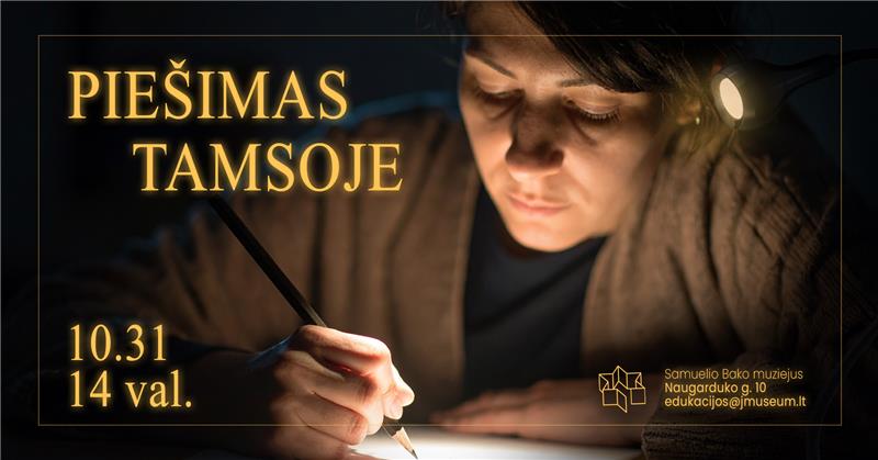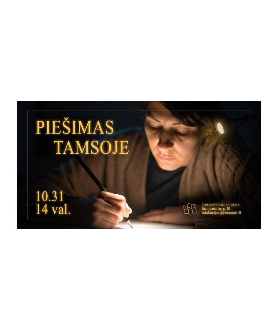 Patinka piešti, eskizuoti? O ar kada bandėte piešti tamsoje? Kviečiame tapti neįprasto, paslaptingo kūrybinio užsiėmimo dalyviais ir piešti aptemdytose muziejaus salėse pasišviečiant nedidele šviesele. Mistinė nuotaika ir lengvi šiurpuliukai garantuoti!
