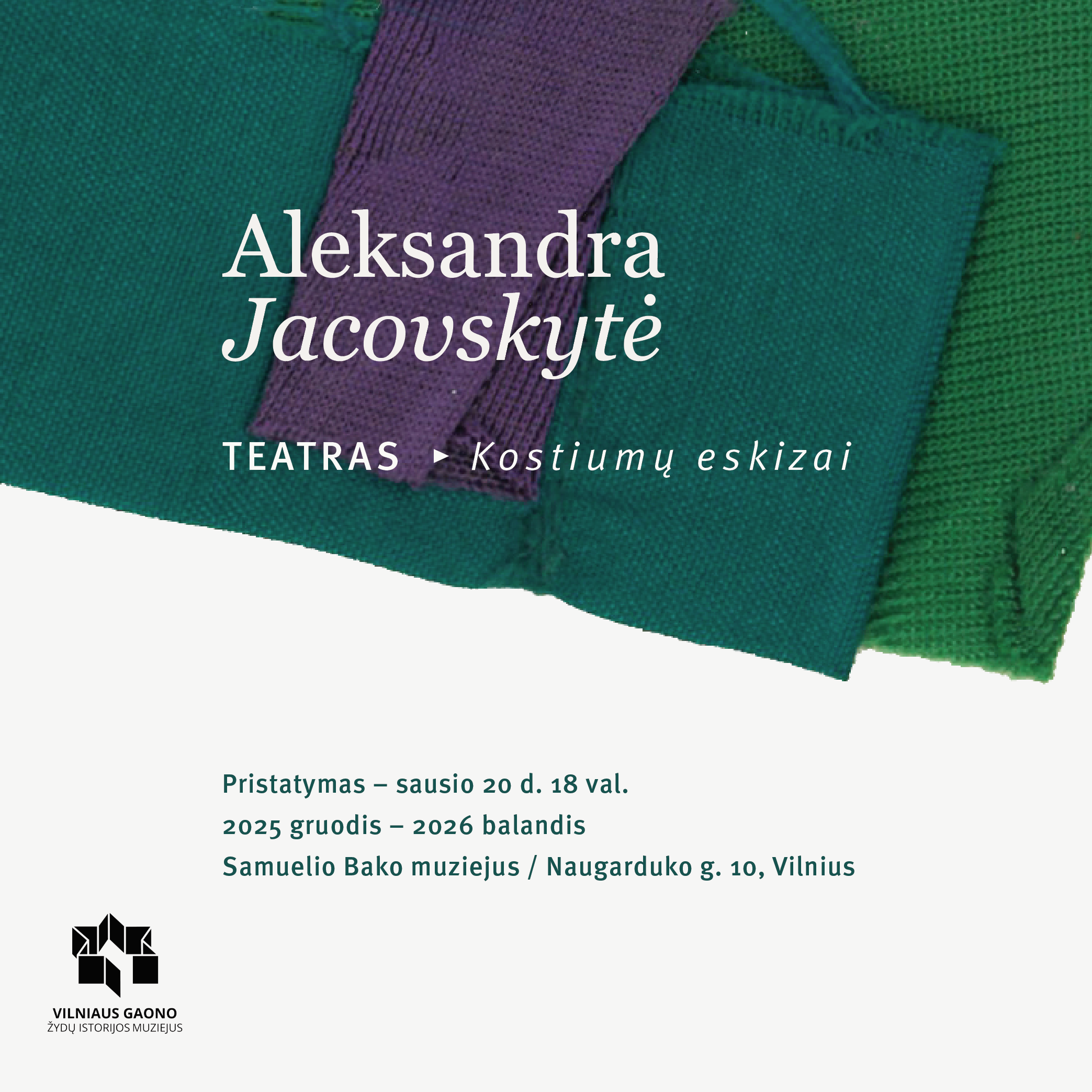 Aleksandra Jacovskytė – scenografė, grafikė ir fotomenininkė. Teatras ir kūryba - neatsiejama jos tapatybės dalis. Menininkės kostiumai buvo matomi įvairių Lietuvos teatrų scenose, o dalis eskizų šiandien saugomi Lietuvos teatro, muzikos ir kino bei Vilniaus Gaono žydų istorijos muziejų fonduose bei privačiose kolekcijose.